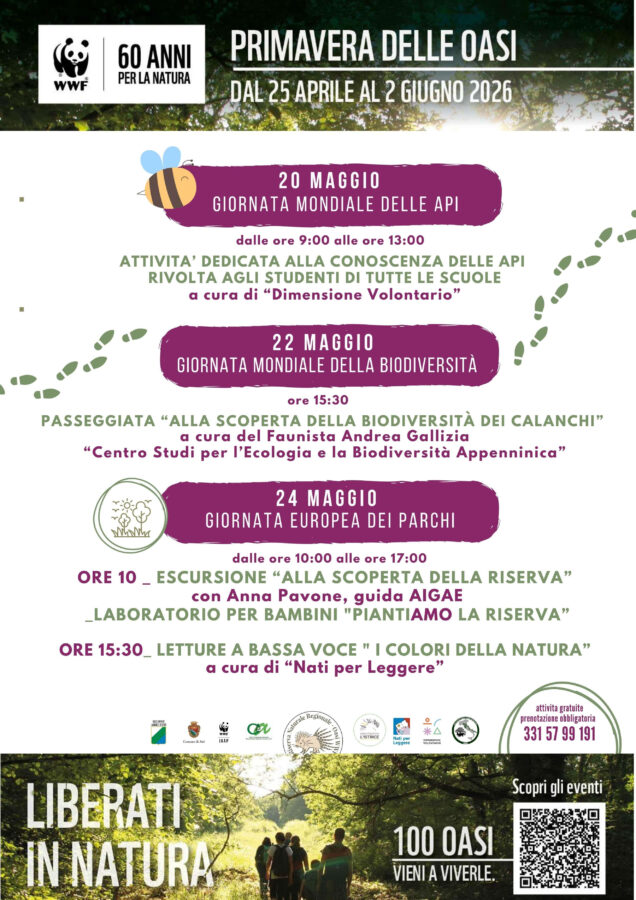 La Riserva Naturale Regionale dei Calanchi di Atri – Oasi WWF invita tutta la comunità alla “Primavera delle Oasi”, tre giorni dedicati alla scoperta e alla valorizzazione del nostro patrimonio naturale.